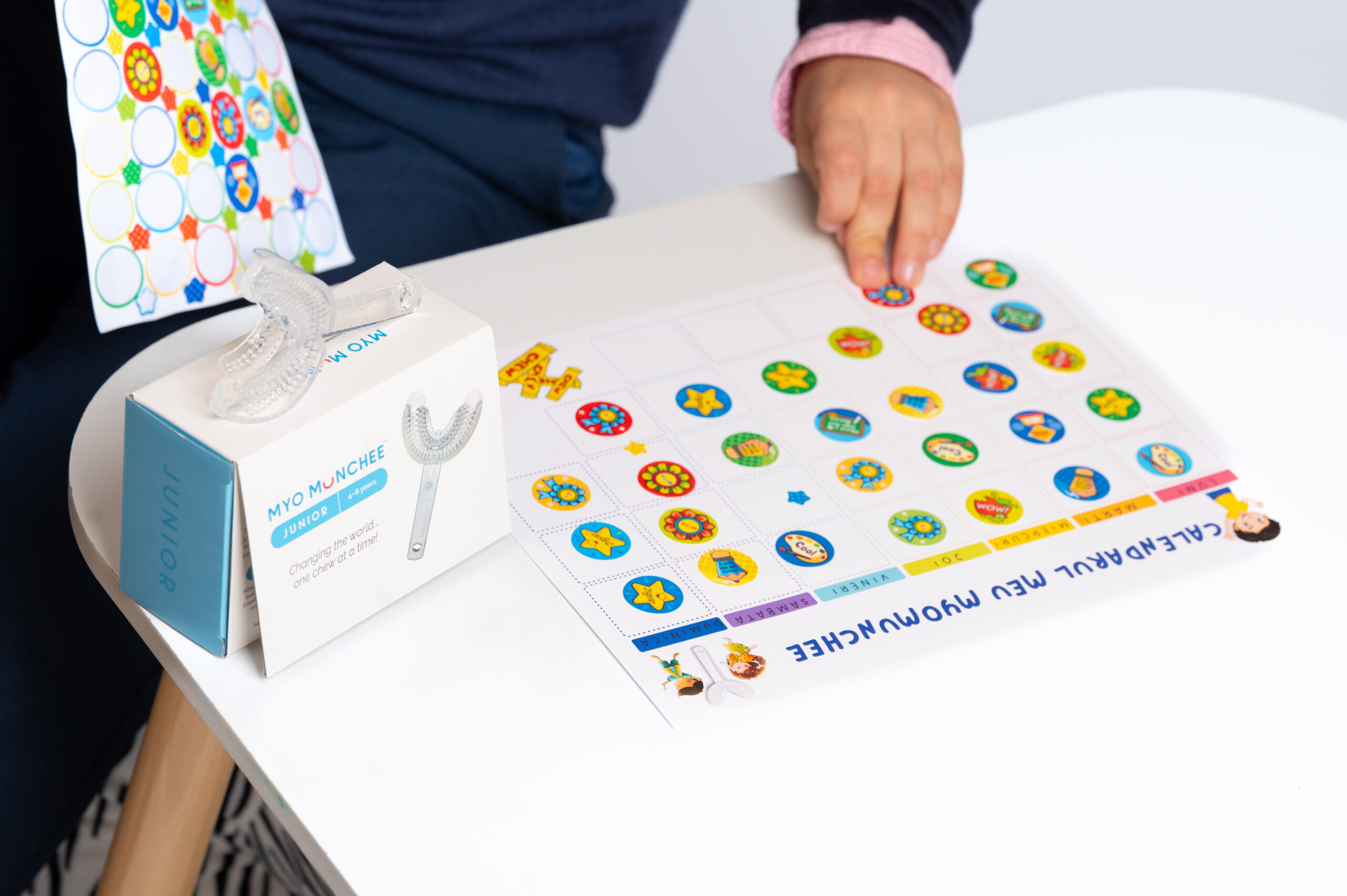 Myo Munchee Junior ajută copiii să învețe modele corecte de mestecare și să dezvolte obiceiuri sănătoase pentru fețele și maxilarele lor în creștere.